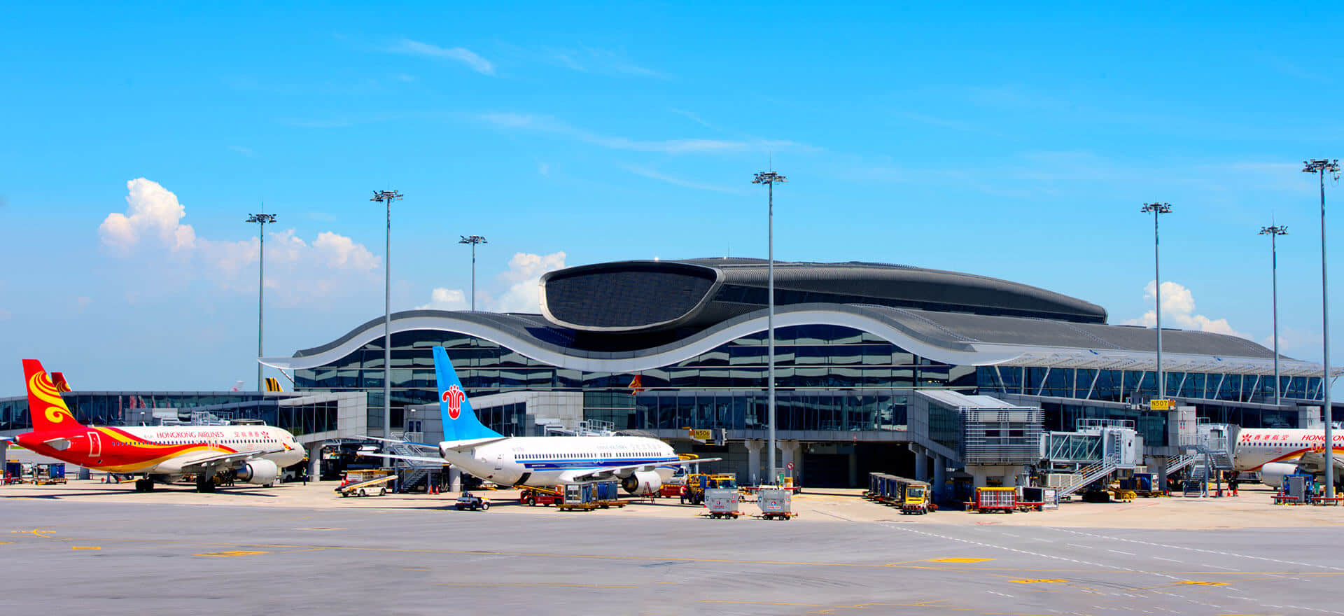 香港国际机场(Hong Kong International Airport),4F级国际民用国际机场,国际航空枢纽,世界最繁忙的航空港之一,全球超过100家航空公司在此运营,客运量位居全球第5位,货运量连续18年全球第1位。